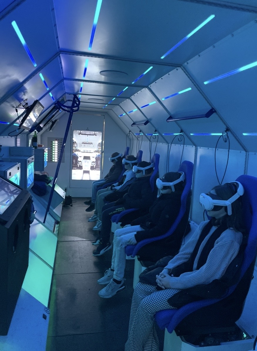 Der Höhepunkt war die virtuelle Reise an Bord des SpaceBuzzOne Shuttles, bei der die Schüler in eine realitätsnahe Mond-Mission und die Erde vom Weltraum aus sehen konnten.